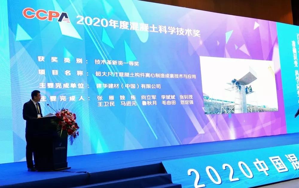 在2020年度混凝土科學(xué)技術(shù)獎項(xiàng)中,建華建材集團(tuán)申報(bào)的《系列化高性能預(yù)制樁成套關(guān)鍵技術(shù)研發(fā)與應(yīng)用》榮獲科技進(jìn)步類唯一一個(gè)一等獎,《超大尺寸混凝土構(gòu)件離心制造成套技術(shù)與應(yīng)用》榮獲技術(shù)革新類唯一一個(gè)一等獎。