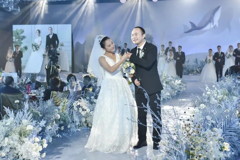 夢境中走出的“海的女兒”拉開夢幻婚禮的序幕,30對新人在“海洋精靈”的引領下依次入場,臉上洋溢著無比幸福的笑容,以默契合拍的舞蹈展示,成為全場焦點。